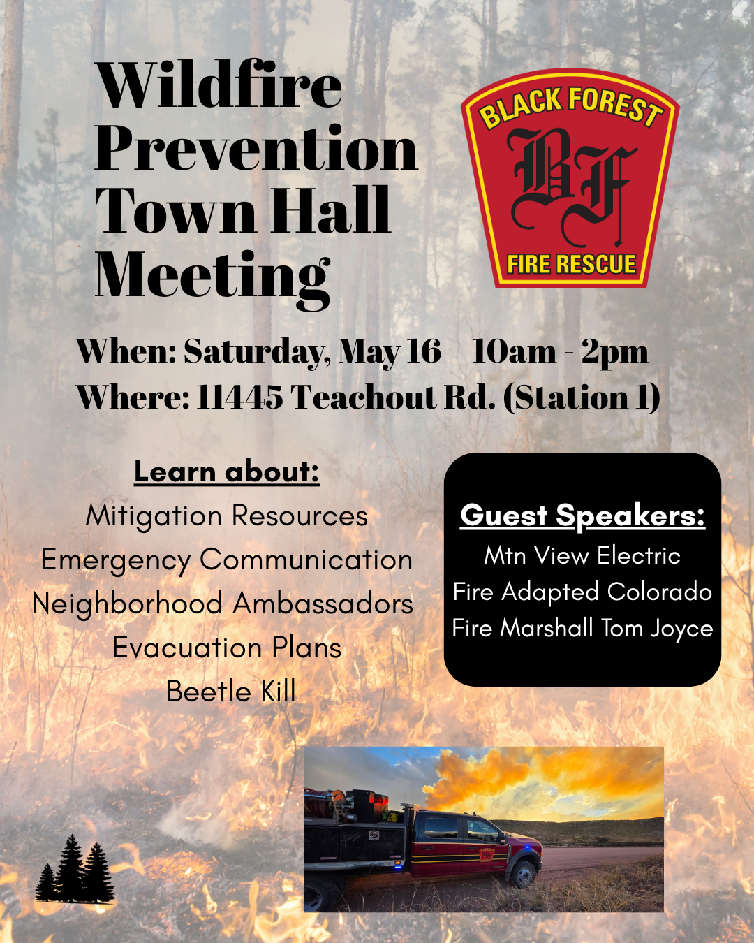 Black Forest neighbors — we’d really appreciate your input. We’re putting together a better picture of what our community needs when it comes to wildfire preparedness, evacuation, and emergency response. This short survey helps us understand what’s working, what’s not, and where we should focus next.